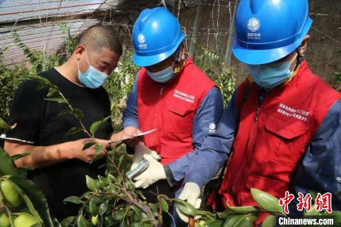 圖為國家電網(wǎng)青海電力三江源(海西德令哈)共產(chǎn)黨員服務(wù)隊(duì)在蔬菜大棚為客戶講解“互聯(lián)網(wǎng)+”供電服務(wù)。國網(wǎng)海西供電公司供圖