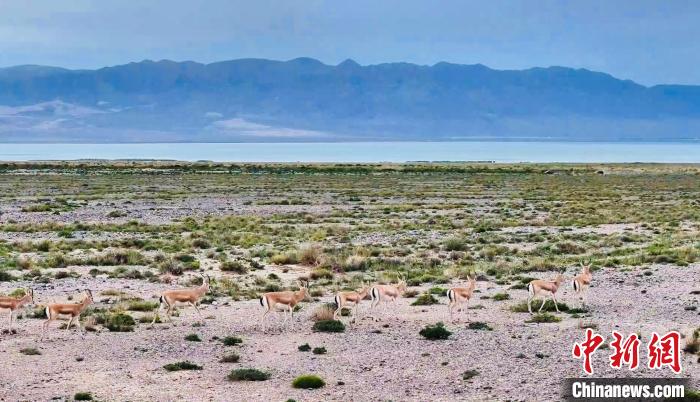 圖為成群鵝喉羚現(xiàn)身都蘭湖國家濕地公園。烏蘭縣融媒體中心供圖