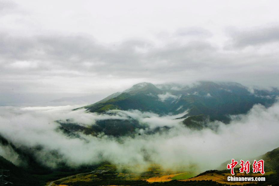 金秋9月,一場(chǎng)秋雨過(guò)后,青海省海南藏族自治州貴德縣山間云霧繚繞,白色云海像潔白的哈達(dá)飄落山間,與藍(lán)天、綠地相映成趣,風(fēng)光旖旎。