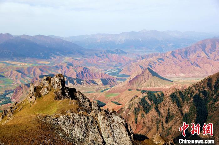 9月14日,在青海省海北藏族自治州祁連縣,記者航拍天境山。天境山位于八寶鎮(zhèn)拉洞村,距祁連縣城約6公里,這里人跡罕至、怪石嶙峋、山泉潺潺、古柏參天,站在觀景臺舉目四望,遠山青翠如黛、羊群似珍珠灑落。
