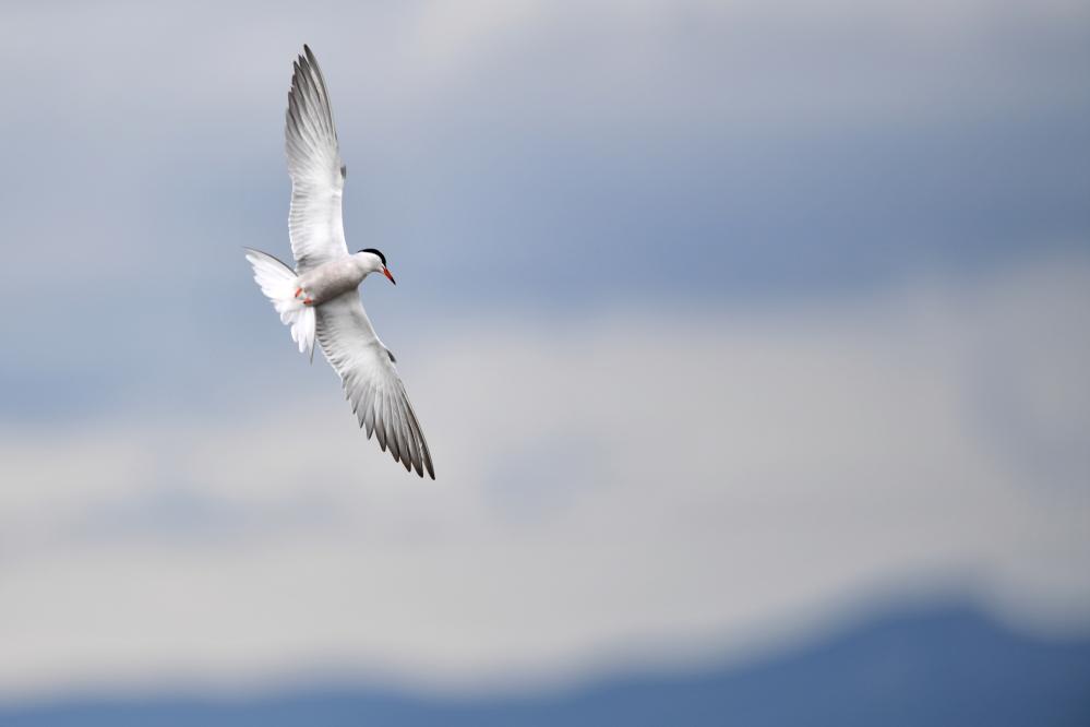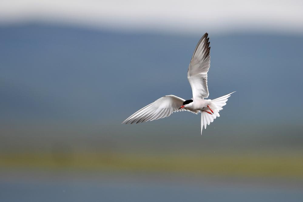 一只燕鷗在甘肅尕海則岔國家級自然保護區(qū)的尕海濕地上飛翔。 新華社記者 陳斌 攝