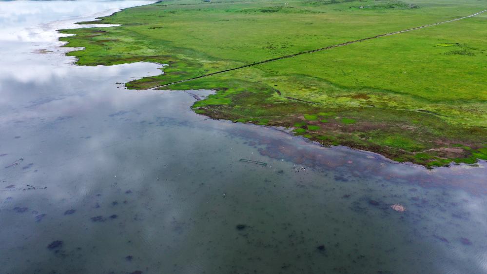 這是甘肅尕海則岔國家級自然保護區(qū)尕海湖的景色。 新華社記者 陳斌 攝