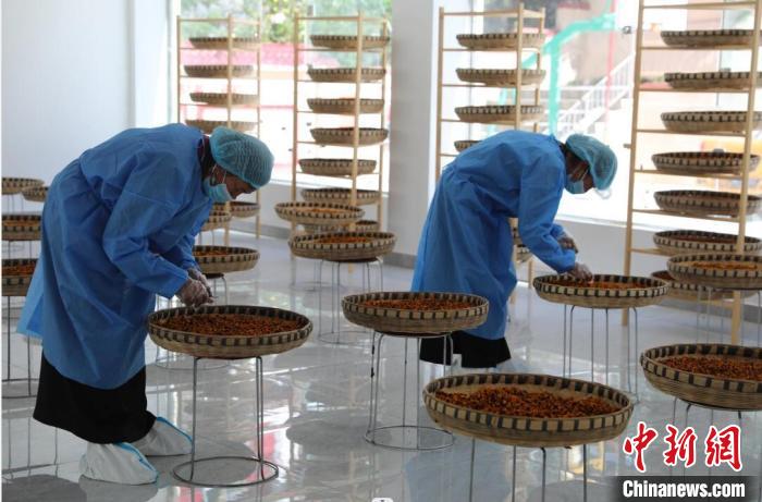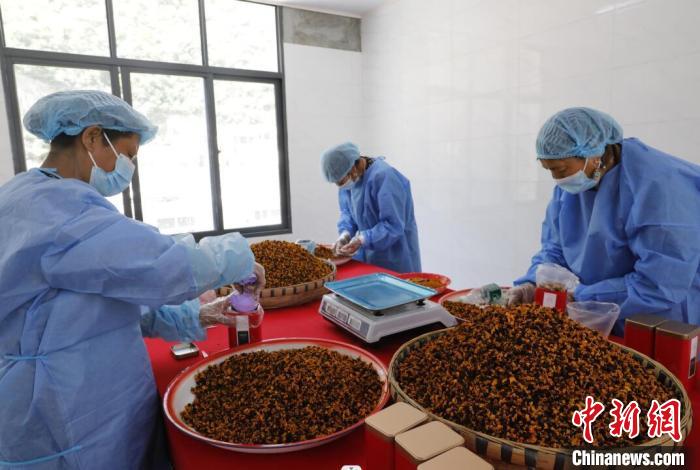 村民正在分裝高原雪菊干花。侯明宏 攝