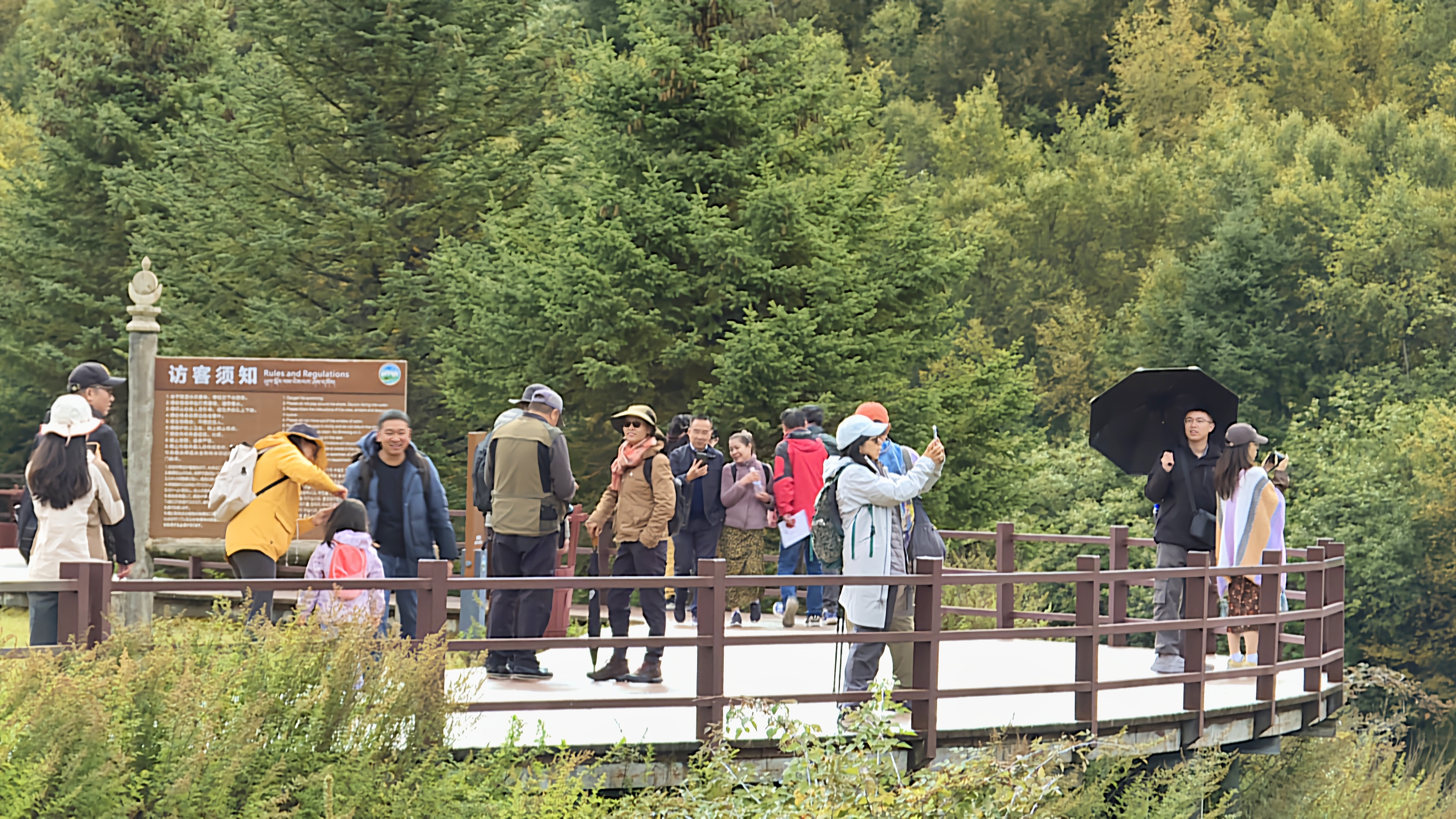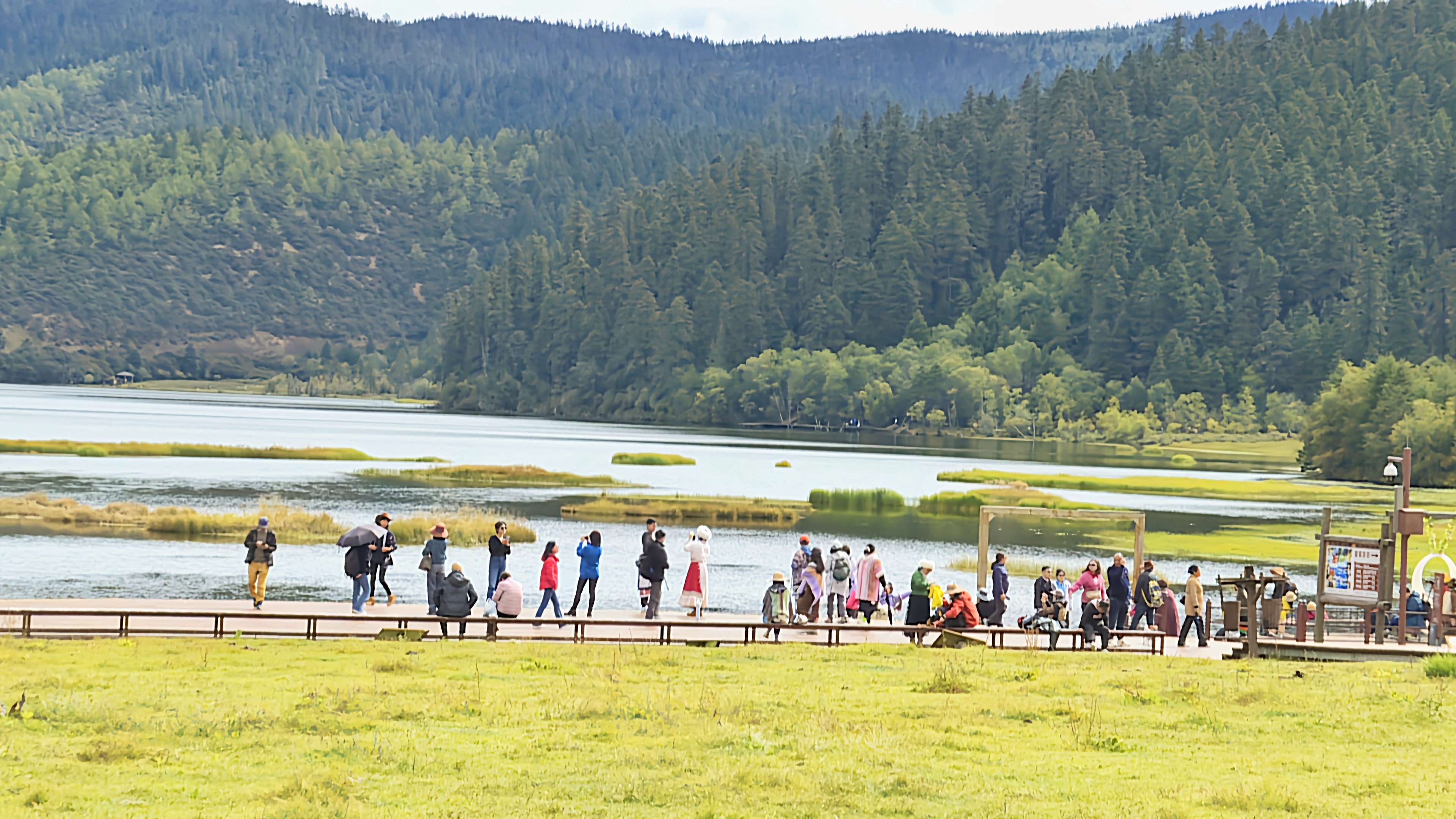 秋日的普達(dá)措國家公園層林盡染、色彩斑斕,高山草甸、原始森林與湖泊濕地構(gòu)成了一幅幅美麗的畫卷,屬都湖棧道上人群熙熙攘攘?!拔沂堑谝淮蝸硐愀窭锢糜?,香格里拉給我的感覺就是,這里的生態(tài)環(huán)境保護(hù)得很好,綠水青山,很值得來游玩?!庇慰退闻勘硎?。