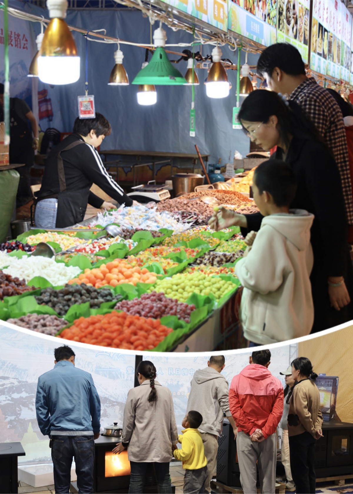 “雙節(jié)”期間,香格里拉市區(qū)納赤東路上的國慶商品展銷會內人頭攢動。