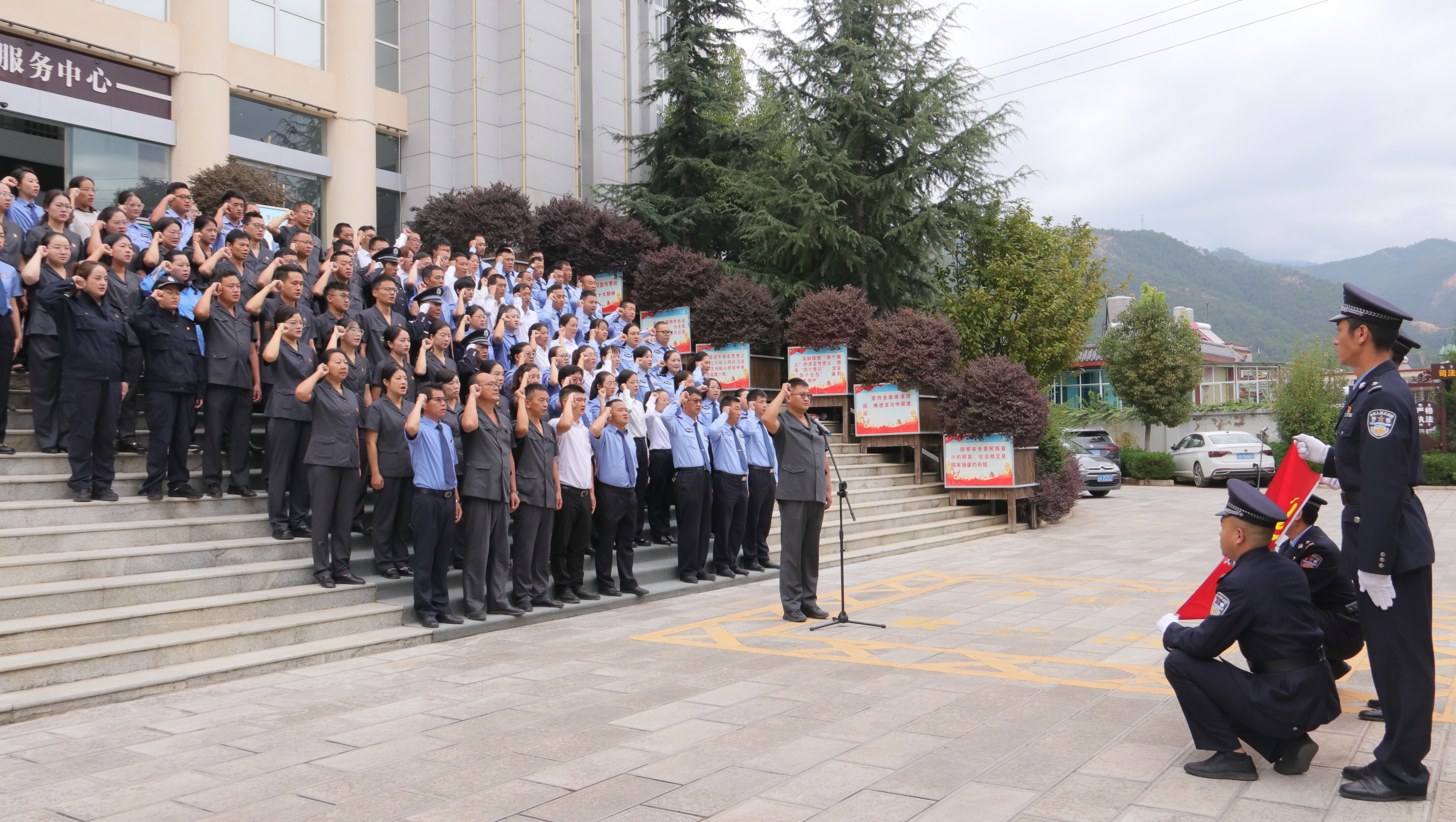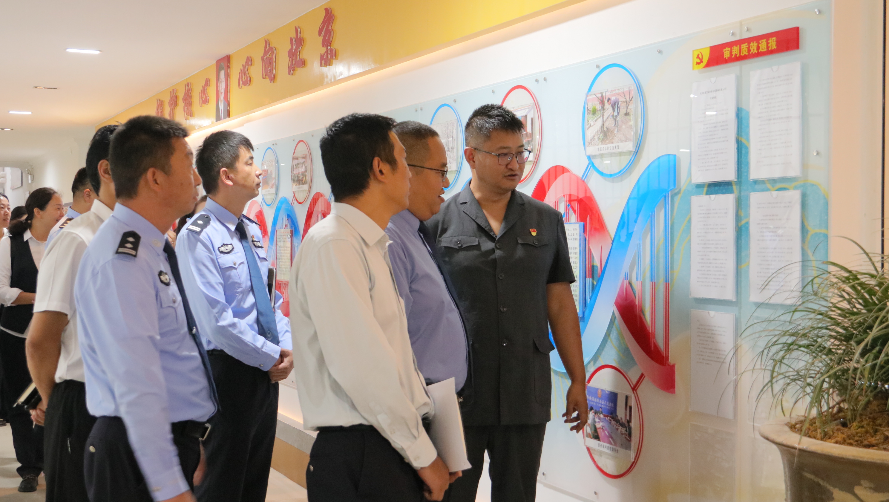 與法同行“零距離”。升旗儀式后,全體同志跟隨講解員進(jìn)入審判大樓,參觀了縣人民法院訴訟服務(wù)中心、黨建文化長(zhǎng)廊,詳細(xì)了解了“蘭韻傈鄉(xiāng)·紅色天平”黨建文化品牌建設(shè)的特色亮點(diǎn),通過(guò)參觀學(xué)習(xí)打開(kāi)了政法系統(tǒng)黨組織互幫互學(xué)、共創(chuàng)共贏的新局面。并現(xiàn)場(chǎng)體驗(yàn)?zāi)M法庭,將法院庭審的真實(shí)場(chǎng)景通過(guò)情景再現(xiàn)的形式,直觀地展示給在場(chǎng)的黨員干部及工作人員,進(jìn)行“以案說(shuō)法、以案示警”。通過(guò)“沉浸式體驗(yàn)”,讓全體黨員親身感受了審判工作氛圍,引導(dǎo)大家進(jìn)一步筑牢政治忠誠(chéng),強(qiáng)化法治思維,牢記初心使命,立足崗位職責(zé),扎實(shí)推進(jìn)全縣政法工作再上新臺(tái)階。
