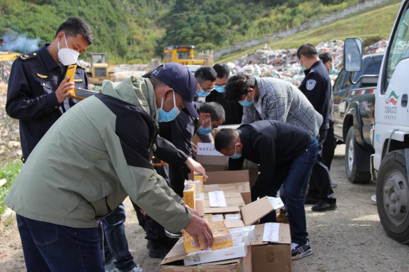 迪慶州集中銷(xiāo)毀假煙9600余條