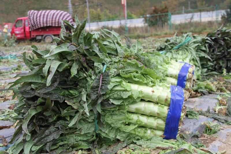 時下,正是萵筍成熟收獲的季節(jié)。在香格里拉市解放村乃日村民小組的萵筍地里,一棵棵青翠欲滴的萵筍把土地染得綠意濃濃,豐收的喜悅撲面而來。菜農(nóng)正在采收萵筍,收割、擇摘、打捆、稱重、搬運(yùn)、裝車,一套流程下來一氣呵成,現(xiàn)場呈現(xiàn)出一派繁忙熱鬧的景象。