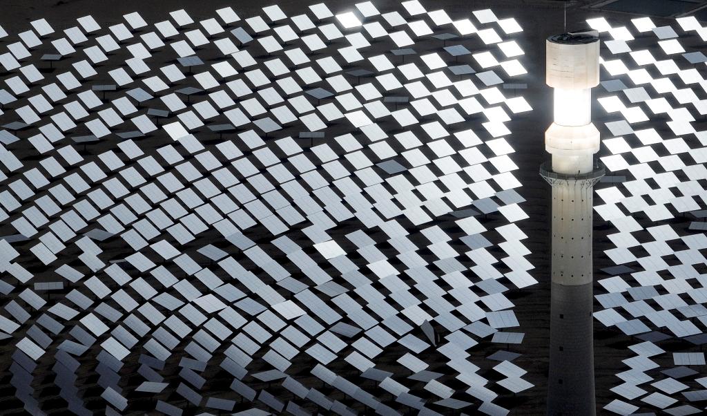 蔚藍色的光伏板在陽光照射下熠熠生輝,光能便轉化成源源不斷的電能;風力發(fā)電機的葉片迎風飛轉,風被“捕捉”進一條條輸電線;百米高的吸熱塔和“鏡子海洋”組成熔鹽塔式光熱電站,科技感與綠色減碳有機結合……