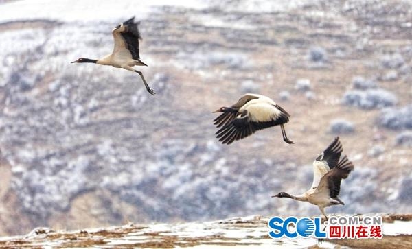 3月16日,在四川省阿壩州紅原縣安曲鎮(zhèn)的草原濕地,到處是雪茫茫的一片,從云南、貴州等地越冬歸來的一群黑頸鶴在此嬉戲覓食。[詳細(xì)]
