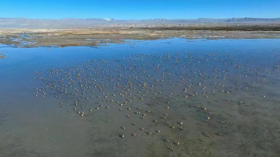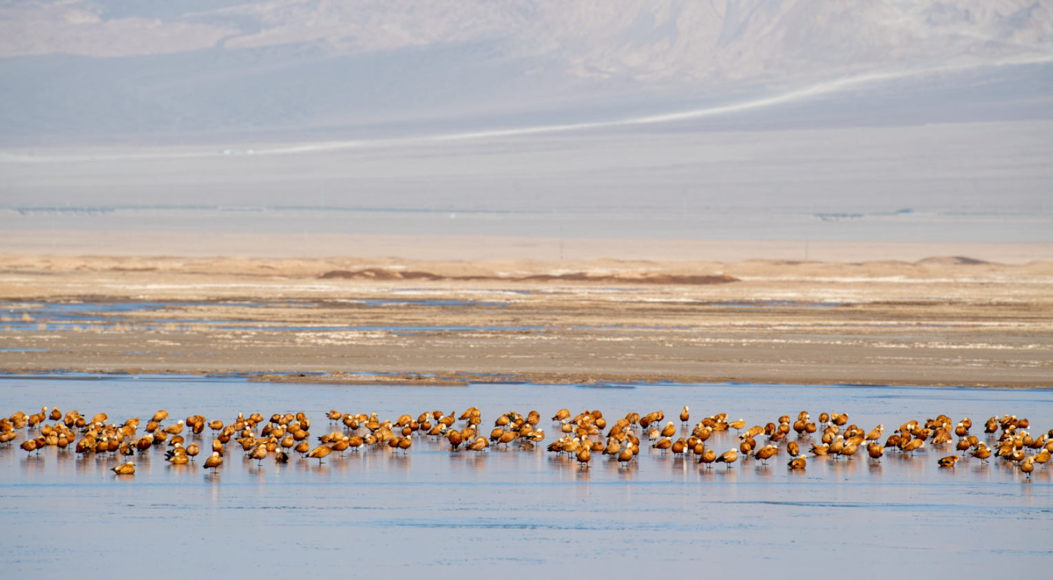 數(shù)千只赤麻鴨齊聚青海茫崖尕斯庫勒湖濕地。王小炯 攝