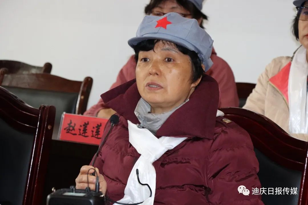 甘祖昌之女甘仁榮回憶起父親,眼中噙滿淚水。其父親甘祖昌,中國人民解放軍少將軍銜,被稱為“將軍農(nóng)民”。1926年參加村農(nóng)民協(xié)會,1927年加入中國共產(chǎn)黨,翌年參加中國工農(nóng)紅軍。在革命生涯中,歷任湘贛軍區(qū)紅軍兵工廠副科長、八路軍第三五九旅供給部軍需科科長、三五九旅供給部副部長、晉綏軍區(qū)三五九旅供給部部長、西北野戰(zhàn)軍第二縱隊(duì)后勤部部長、第一野戰(zhàn)軍二軍后勤部部長等職。先后參加了國內(nèi)革命戰(zhàn)爭、抗日戰(zhàn)爭、解放戰(zhàn)爭,為了黨和人民的事業(yè)出生入死、數(shù)次負(fù)傷 。中華人民共和國成立后,甘祖昌歷任新疆軍區(qū)后勤部副部長兼供給處處長,兼財(cái)務(wù)處處長,新疆軍區(qū)后勤部部長。1955年被授予少將軍銜,榮獲八一勛章、獨(dú)立自由勛章、解放勛章等 。1957年,甘祖昌在辭去新疆軍區(qū)后勤部部長的職務(wù)后,帶著家人回到闊別20多年的家鄉(xiāng),從此開始了29年的“農(nóng)民生涯”。從江西到延安再到新疆,甘祖昌將人生中三分之二的時光都奉獻(xiàn)給了國家獨(dú)立和民族解放的革命斗爭中。其母親龔全珍是開國少將甘祖昌夫人、江西省萍鄉(xiāng)市南陂小學(xué)原校長。1957年8月,龔全珍隨丈夫甘祖昌回家鄉(xiāng)江西省蓮花縣務(wù)農(nóng)并一直從事鄉(xiāng)村教師工作。離休后,又扶貧助學(xué),開辦“龔全珍工作室”服務(wù)社區(qū)、群眾。著有紀(jì)實(shí)作品《我和老伴甘祖昌》。習(xí)近平總書記先后兩次親切接見龔全珍,親切地稱她為“老阿姨”。龔全珍曾榮獲第四屆全國道德模范稱號、“感動中國”2013年度十大人物 、全國優(yōu)秀共產(chǎn)黨員 、“感動江西十大教育年度人物”“全國模范退役軍人”等稱號。甘仁榮在座談會上談及父母從小對子女嚴(yán)苛的家教,從飯桌上絕不能浪費(fèi)一粒糧的教育再到了父母離開城市回農(nóng)村搞建設(shè)的過往,從幼兒的少不更事,到如今自己親身來到迪慶,感受父輩走過的路,真切地體會到了父輩身上不畏艱險、堅(jiān)韌不拔、頑強(qiáng)拼搏、攻堅(jiān)克難的奮斗精神和為黨和人民的事業(yè)“鞠躬盡瘁、死而后已”的偉大獻(xiàn)身精神。現(xiàn)場氣氛莊嚴(yán)肅穆,令人感動。