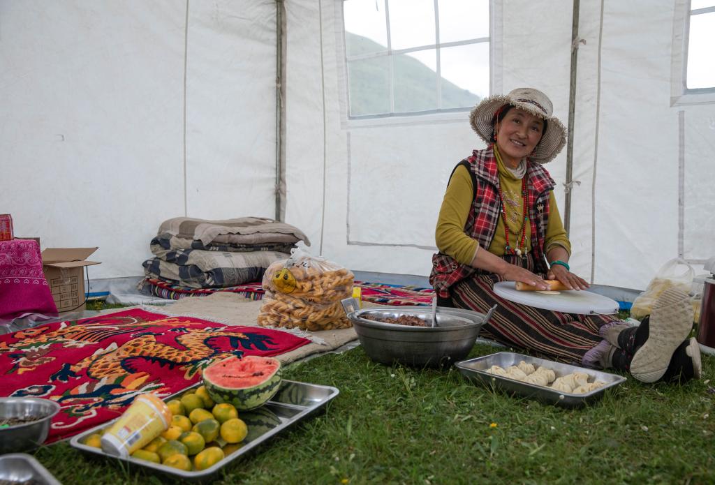 2021年7月25日,道孚縣牧民在帳篷里做包子。新華社記者 劉夢(mèng)琪 攝