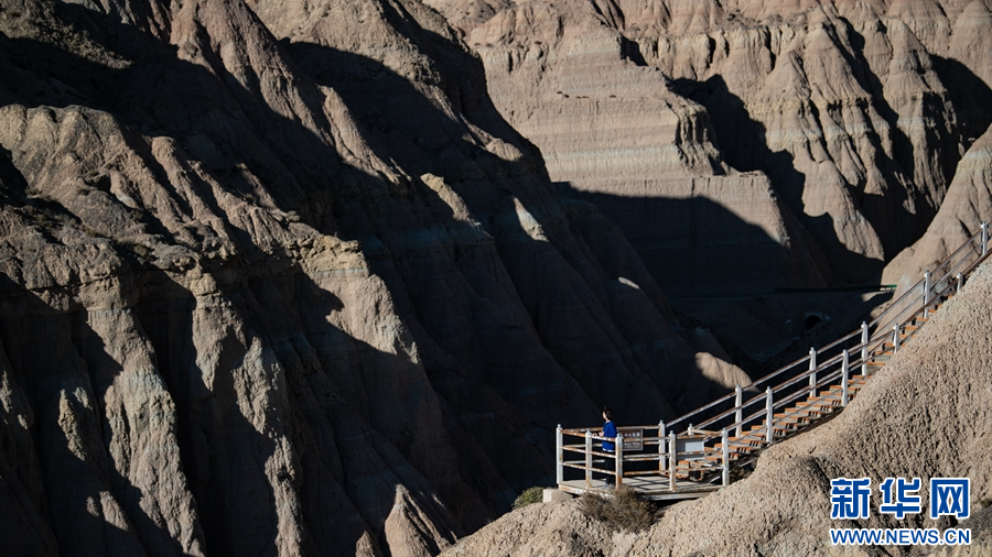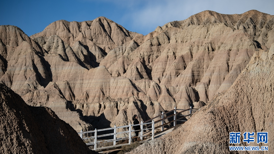 游客在龍羊峽土林地質公園景區(qū)游玩。新華網 潘彬彬 攝