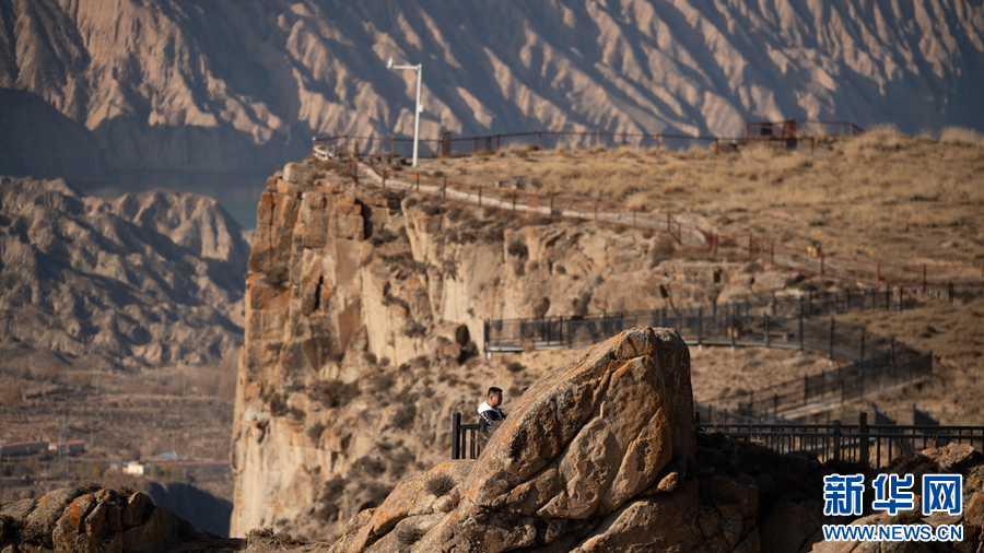 游客在龍羊大峽谷懸崖攬勝區(qū)游玩。新華網 潘彬彬 攝