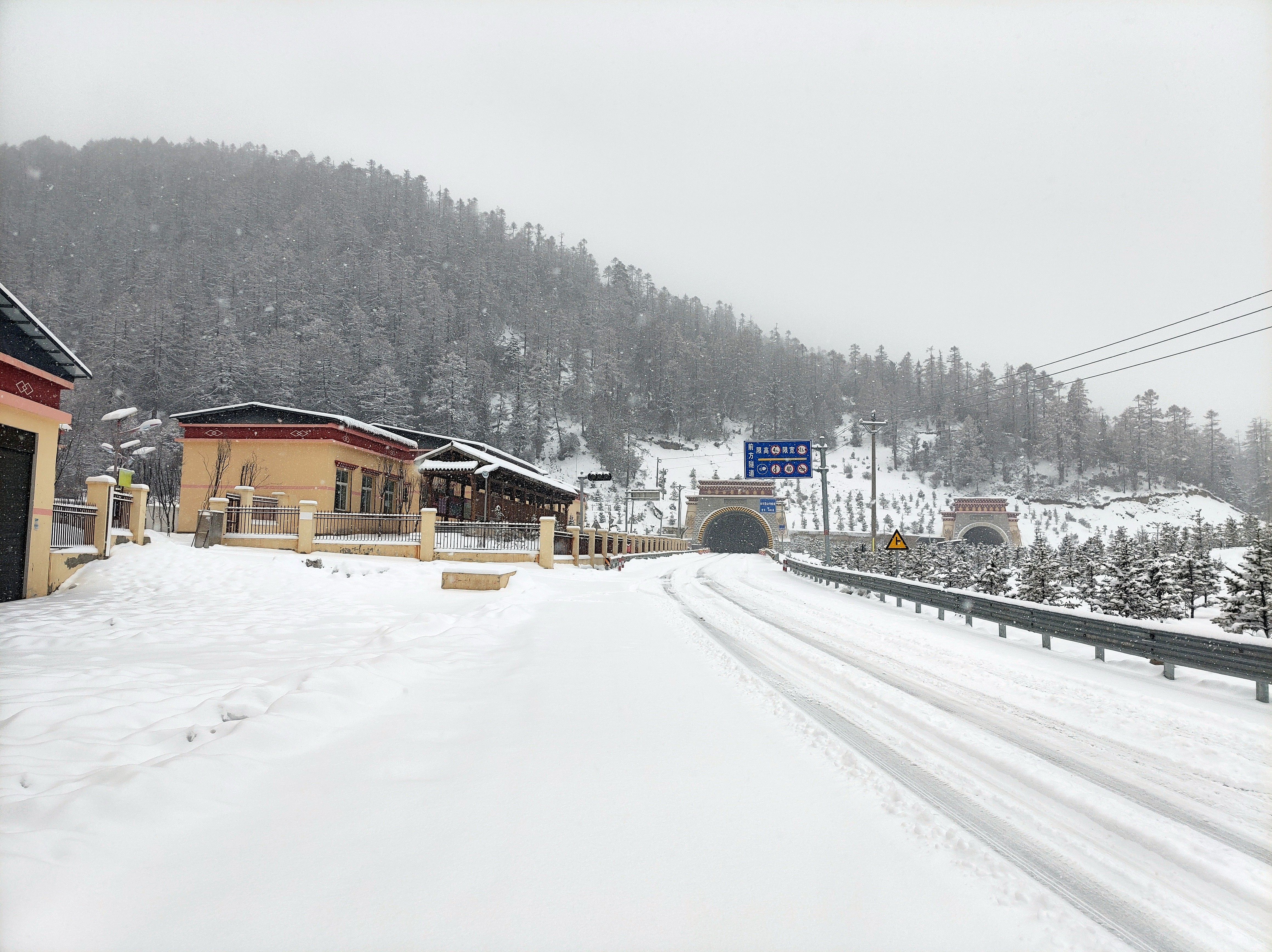 受降雪影響,白馬雪山路段實(shí)行交通管制