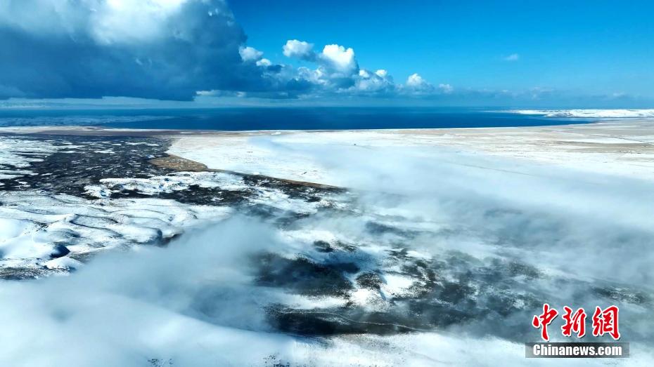 雪落青海湖金沙灣:明暗交錯若大自然的“咖啡拉花”