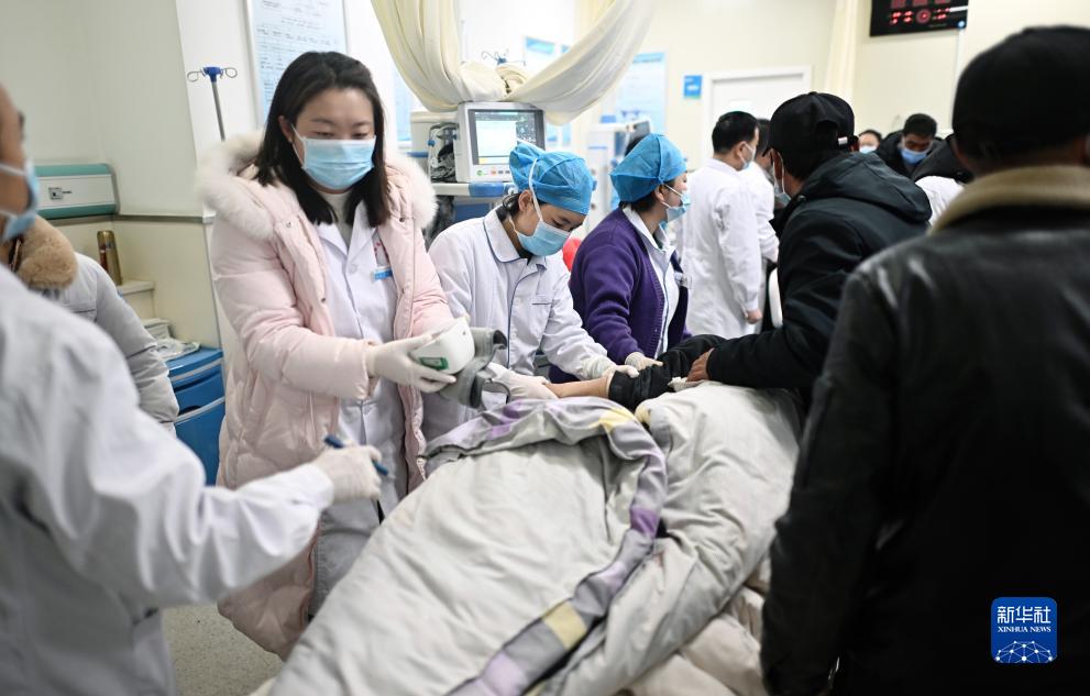 12月19日,一名地震傷員在青海省海東市民和回族土族自治縣人民醫(yī)院接受救治。記者從青海省委宣傳部和青海省應(yīng)急管理廳等部門獲悉,甘肅積石山6.2級(jí)地震波及鄰省青海,截至19日凌晨4時(shí),已造成青海省海東市9人遇難,124人受傷。新華社記者 張宏祥 攝
