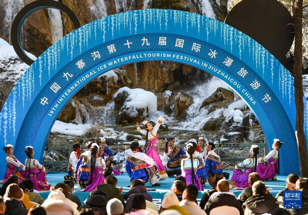 1月4日,演員在中國九寨溝第十九屆國際冰瀑旅游節(jié)開幕式上表演。新華社記者 王曦 攝