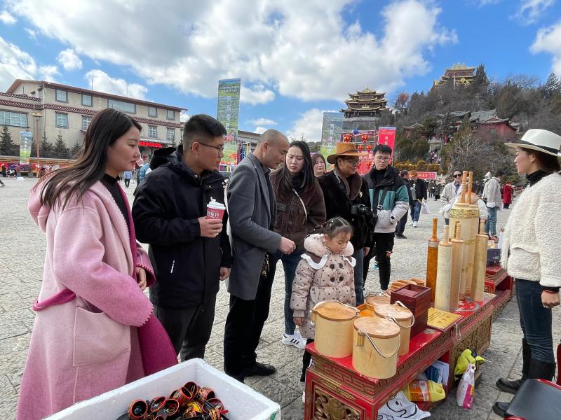 活動現(xiàn)場陳列的非遺產(chǎn)品:尼西土陶、木碗、藏香等精美展品吸引了眾多游客和市民欣賞、購買。