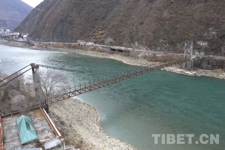 素有“甘孜東大門”之稱的四川省甘孜藏族自治州瀘定縣是長征精神和“兩路”精神的重要交匯地,在距離名揚(yáng)中外的瀘定橋大約500米的地方,坐落著川藏公路上第一座鋼架索橋——大渡河橋。