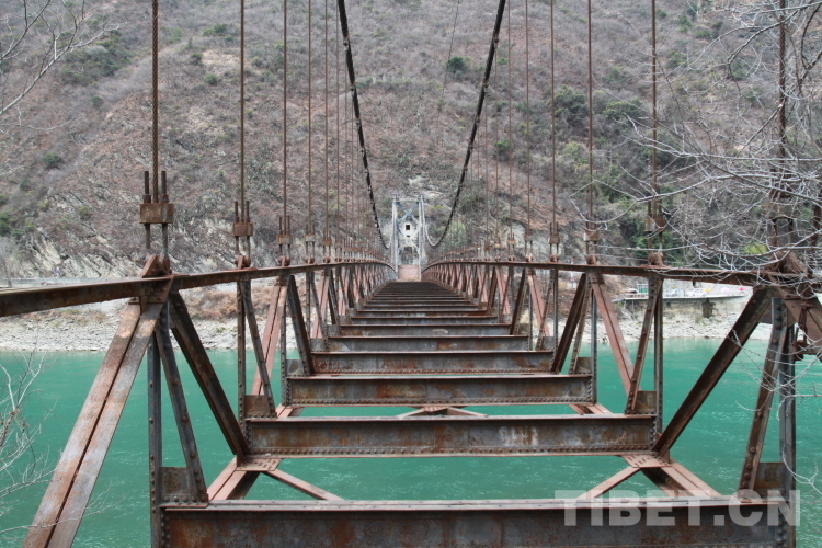 該橋始建于1950年11月。當(dāng)時(shí)為了徹底解放西藏、鞏固西南邊防,中國人民解放軍第十八軍在劉伯承、鄧小平、賀龍等同志“一面進(jìn)軍,一面建設(shè)”的號召下,在修筑川藏公路的同時(shí),由西南交通部負(fù)責(zé),廣大解放軍指戰(zhàn)員、全體技術(shù)人員和各路民工發(fā)揚(yáng)不怕犧牲的革命精神,克服一切困難,修建了川藏公路上的第一座鋼索懸橋,于1951年5月底勝利完成了建橋任務(wù)。