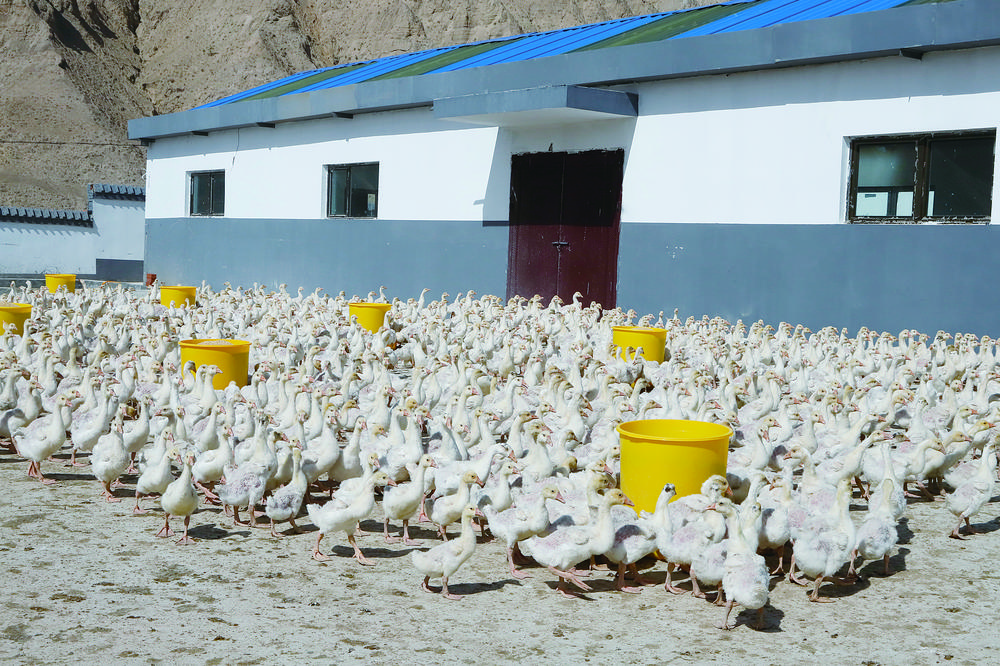 色爾加村黨支部書記羊壯項(xiàng)杰看著成群的種鵝,向記者介紹,“幸福鵝”進(jìn)入到生長(zhǎng)的關(guān)鍵時(shí)期,飼養(yǎng)員給鵝換上了精粗結(jié)合的飼料補(bǔ)充營(yíng)養(yǎng),等鵝長(zhǎng)得又大又壯,出籠的時(shí)候能賣個(gè)好價(jià)錢。