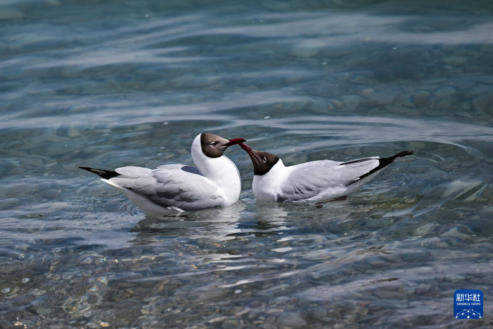 這是4月11日在青海湖拍攝的棕頭鷗。新華社記者 張龍 攝