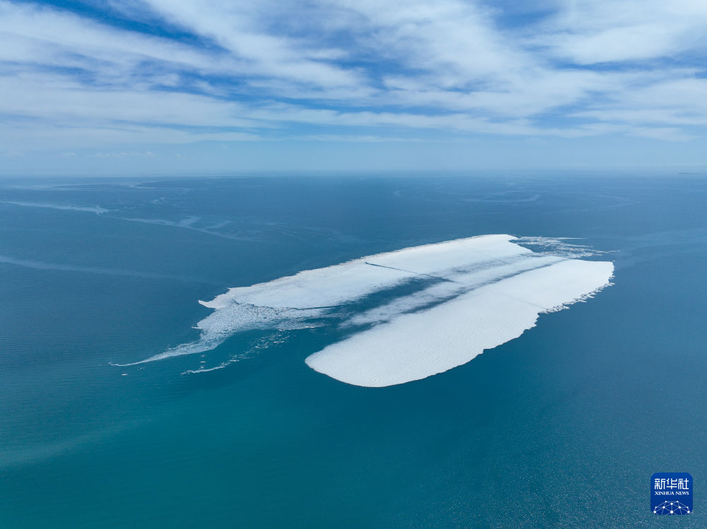 這是4月11日在青海湖拍攝的部分未融化的湖冰(無人機(jī)照片)。新華社記者 張龍 攝
