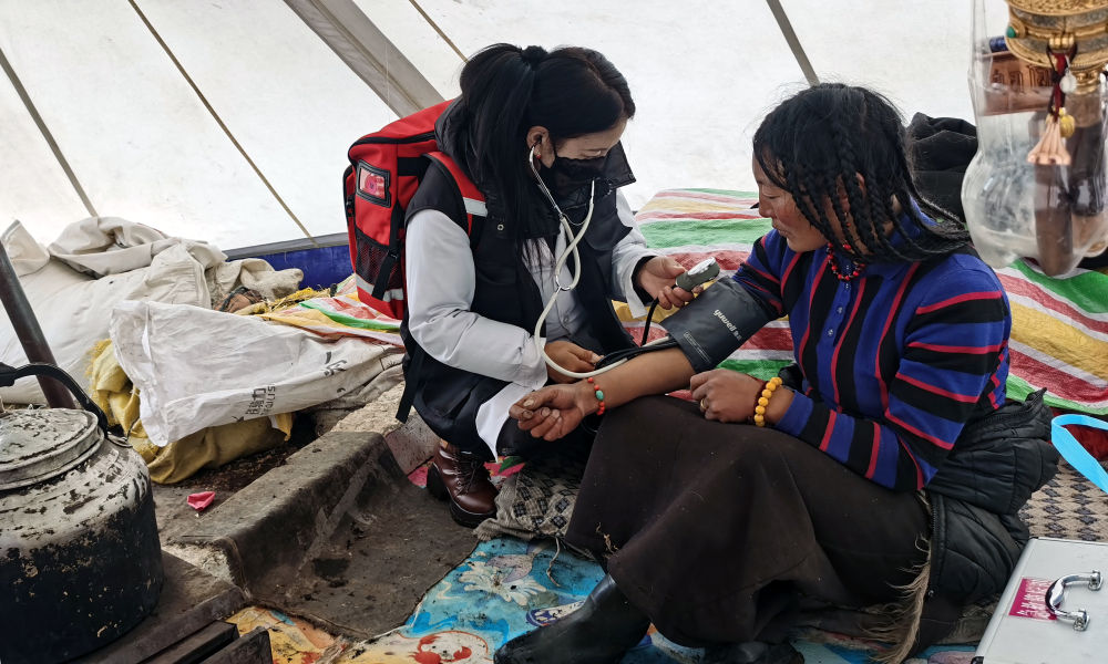 理塘縣村戈鄉(xiāng)中心衛(wèi)生院的家庭醫(yī)生團(tuán)隊(duì)前往遠(yuǎn)牧區(qū)為牧民送醫(yī)送藥上門。(受訪者供圖)