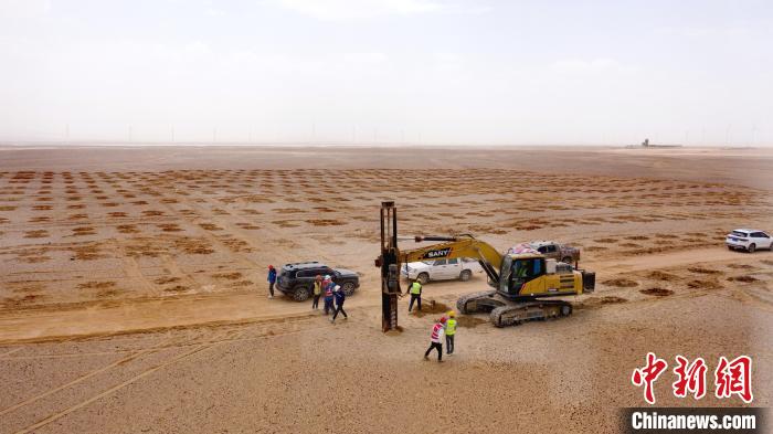 “五一”國際勞動節(jié)前夕,記者走進國家第二批風光大基地重點項目——國家能源集團青海大柴旦100萬千瓦風光儲項目建設一線。據(jù)悉,該項目為了架設143萬片光伏板,施工人員需要在戈壁上打近50萬個樁孔,用來支撐光伏板。航拍正在建設的項目現(xiàn)場,樁孔猶如“大地棋盤”,蔚為壯觀。