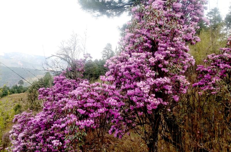 4月底以來,香格里拉杜鵑花進入盛開期。在虎跳峽鎮(zhèn)紅旗村至小中甸鎮(zhèn)的國道214線沿線,漫山遍野的杜鵑花把一座座山頭裝扮得如詩如畫,讓人流連忘返。