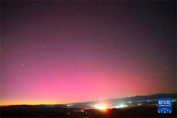 這是2024年5月11日在青海省海北藏族自治州門源回族自治縣拍攝到的極光。新華社發(fā) 魏鵬 攝