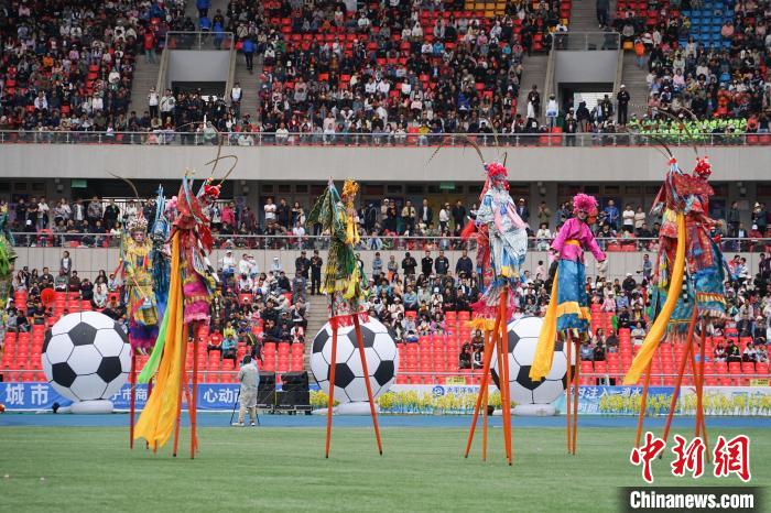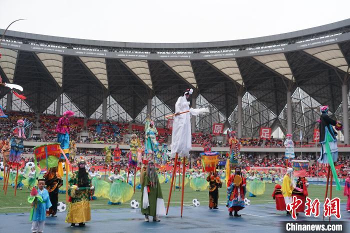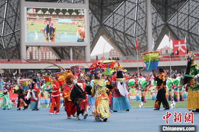 圖為開幕式現(xiàn)場(chǎng)社火高蹺進(jìn)行表演。馬銘言 攝