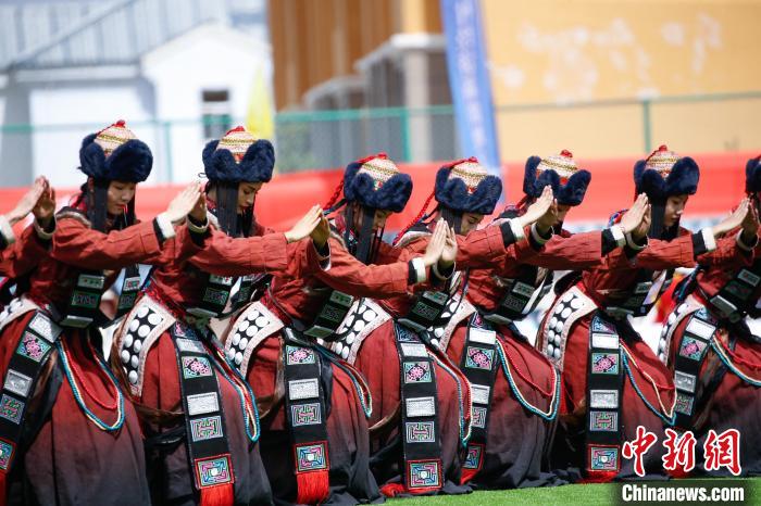圖為演員通過舞蹈展示國家級非遺華熱藏族服飾。馬銘言 攝