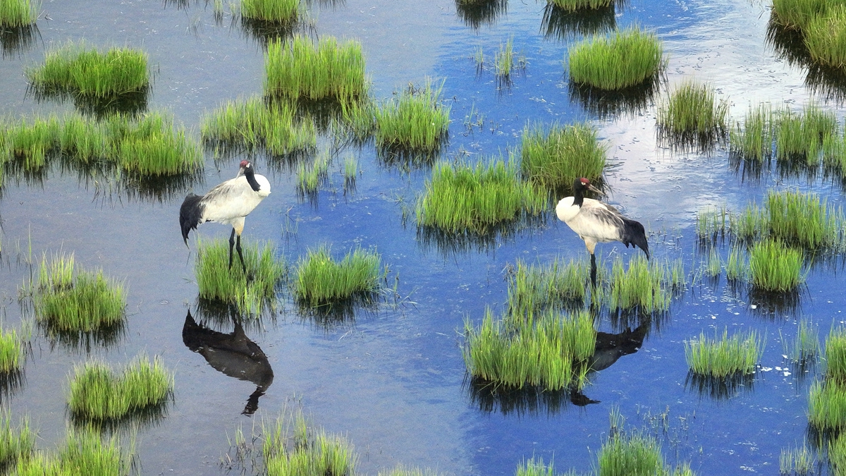 今年3月中旬,首批在云貴高原越冬的黑頸鶴來(lái)到若爾蓋濕地國(guó)家級(jí)自然保護(hù)區(qū),在保護(hù)區(qū)進(jìn)行新一輪適應(yīng)和筑巢后,迎來(lái)了繁育期。這對(duì)正在產(chǎn)卵的黑頸鶴夫婦是當(dāng)?shù)氐摹袄吓笥选?,今年已是它們?cè)诖诉B續(xù)繁育的第五個(gè)年頭。