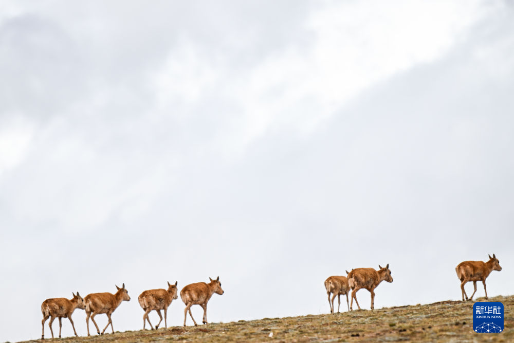 2024年5月27日,藏羚羊在可可西里五道梁地區(qū)遷徙。新華社記者 張龍 攝