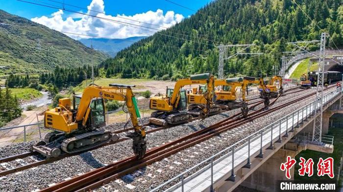 川青鐵路鎮(zhèn)黃段500米長(zhǎng)軌鋪設(shè)采用“直鋪法”和“換鋪法”相結(jié)合的方式組織施工,無(wú)砟道床采取“直鋪法”施工,有砟道床采取“換鋪法”施工,利用工具軌鋪通右線,作為工程路料運(yùn)輸主線,同時(shí)兼顧左線鋪軌、長(zhǎng)軌焊接鎖定及大機(jī)搗固穿插施工作業(yè)?!盀榇_保鋪軌安全有序推進(jìn),專(zhuān)門(mén)配置了HXN5型高原大功率內(nèi)燃機(jī)車(chē)等80余臺(tái)(輛)大型設(shè)備開(kāi)展軌道施工作業(yè)。”張華稱(chēng),期間項(xiàng)目部合理分配資源,5天完成100公里長(zhǎng)鋼軌鋪設(shè),12天完成100公里無(wú)縫線路單元焊接及放散鎖定工作。
