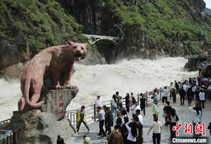 7月1日,游客在云南香格里拉虎跳峽景區(qū)內(nèi)觀光游覽。中新社記者 黃興鴻 攝