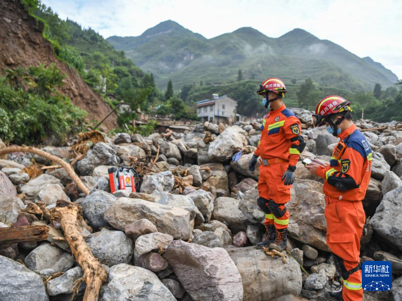 7月21日,在四川省雅安市漢源縣馬烈鄉(xiāng)新華村,消防救援人員在河灘使用雷達生命探測儀開展搜救工作。新華社記者 王曦 攝