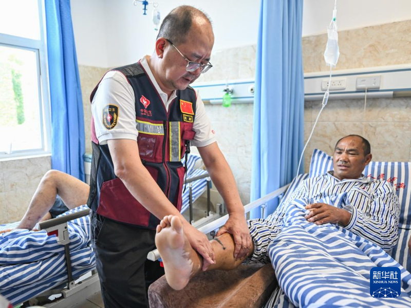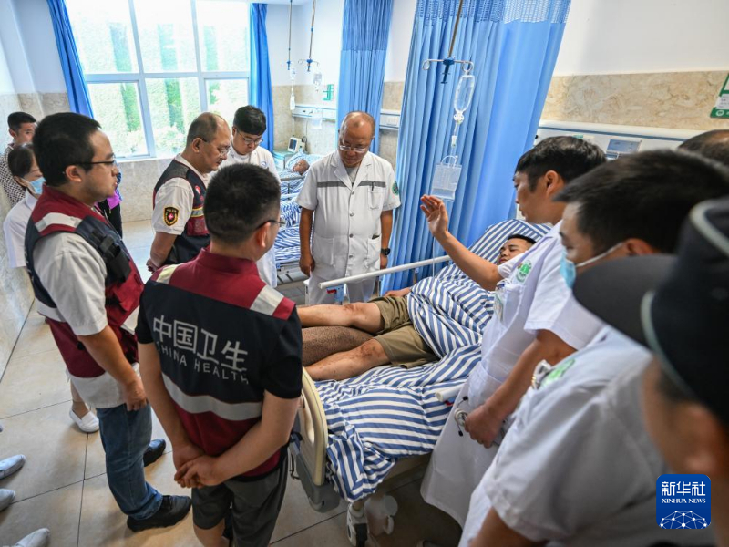 7月22日,在四川省雅安市漢源縣人民醫(yī)院,醫(yī)療專家在檢查傷員傷情。新華社記者 王曦 攝