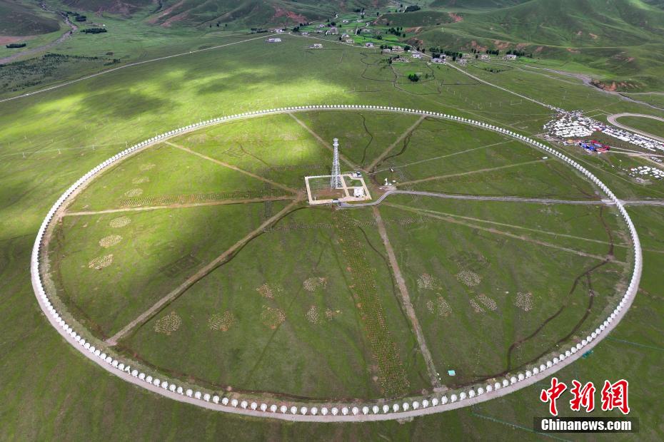 7月22日,四川稻城縣,草原上的圓環(huán)陣太陽射電成像望遠(yuǎn)鏡。(無人機照片)中新社記者 劉忠俊 攝