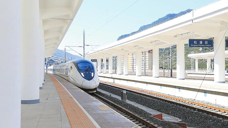 運(yùn)行試驗(yàn)車駛進(jìn)松潘站。中國鐵路成都局集團(tuán)公司供圖