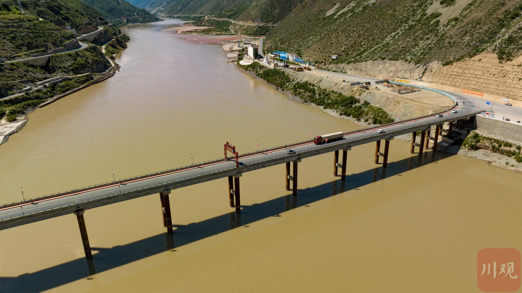 車輛通行在竹巴龍金沙江大橋上