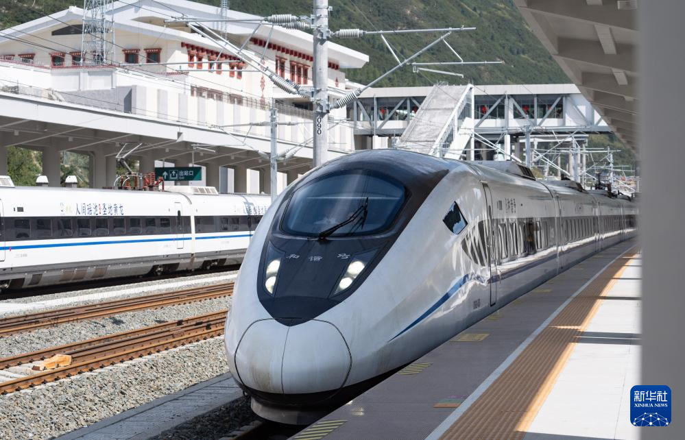 8月30日,首發(fā)列車C5818次駛出黃龍九寨站。新華社記者 江宏景 攝