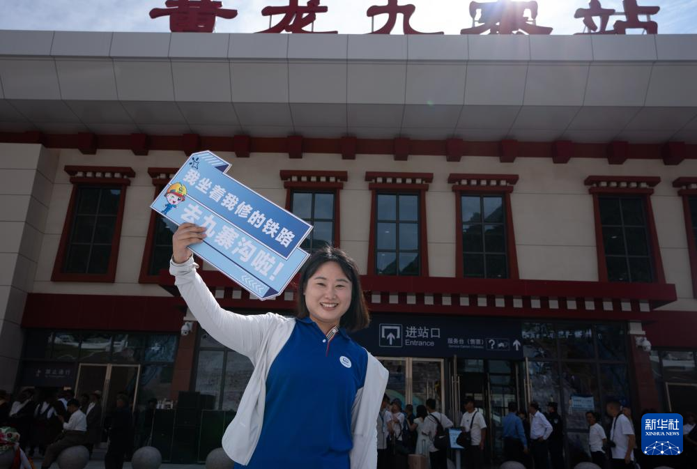 8月30日,在黃龍九寨站,當地群眾慶祝川青鐵路鎮(zhèn)江關至黃勝關段開通。新華社記者 江宏景 攝