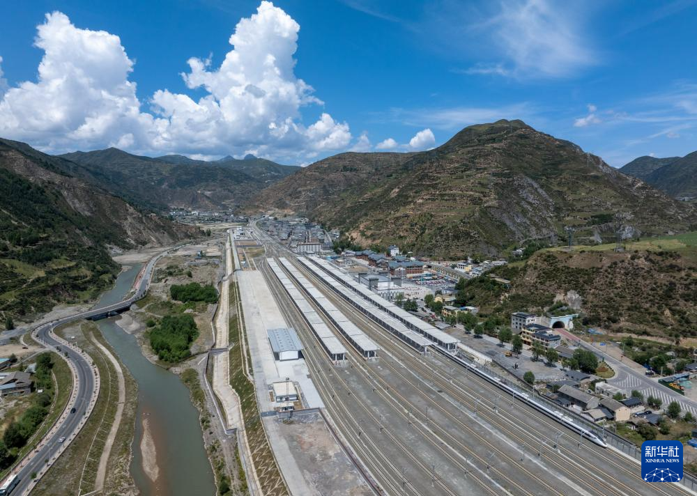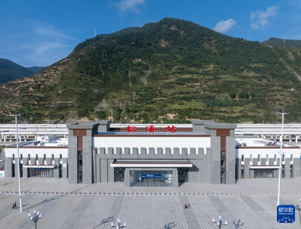 川青鐵路松潘站(8月29日攝,無人機照片)。新華社記者 江宏景 攝