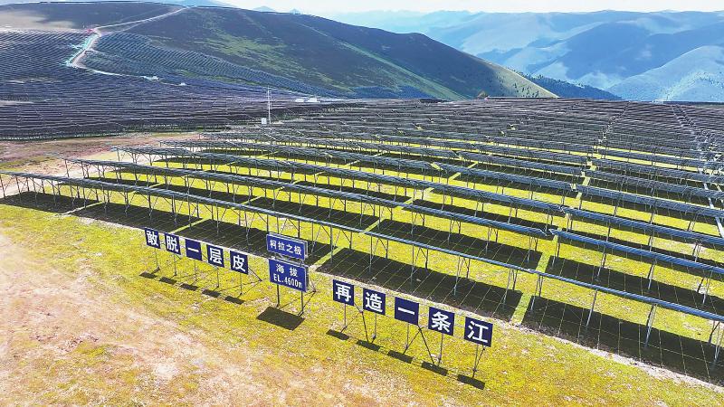 “光”與“電”,正在成為這里的新風(fēng)景。雅江縣境內(nèi),海拔4600米的扎拉托桑雪山上,一排排光伏板組成的“光伏?!痹诔缟骄X間逐光發(fā)電,與奔流不息的雅礱江遙相呼應(yīng),一靜一動(dòng)間水光共舞,點(diǎn)亮山河。