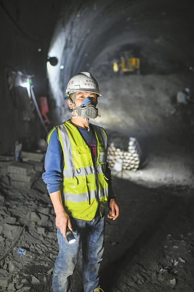 8月13日,值班長陳亮在西寧至成都鐵路四川段紅原2號隧道內(nèi)。他每日往返洞內(nèi)數(shù)十次,工作超10小時,主要負責觀察施工情況及人員調(diào)度。何海洋 攝