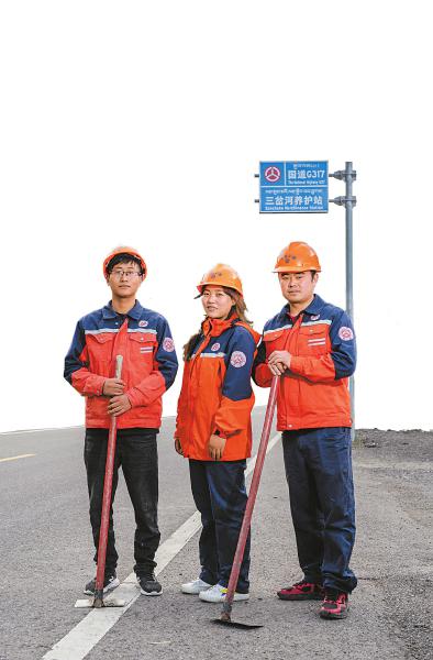 8月19日,甘孜州爐霍縣爐霍公路分局三岔河養(yǎng)護管理站,“90后”養(yǎng)護員袁明建(左)、尼馬翁姆(中)、蘭勛常年駐守,保障國道317線的暢通。何海洋 攝